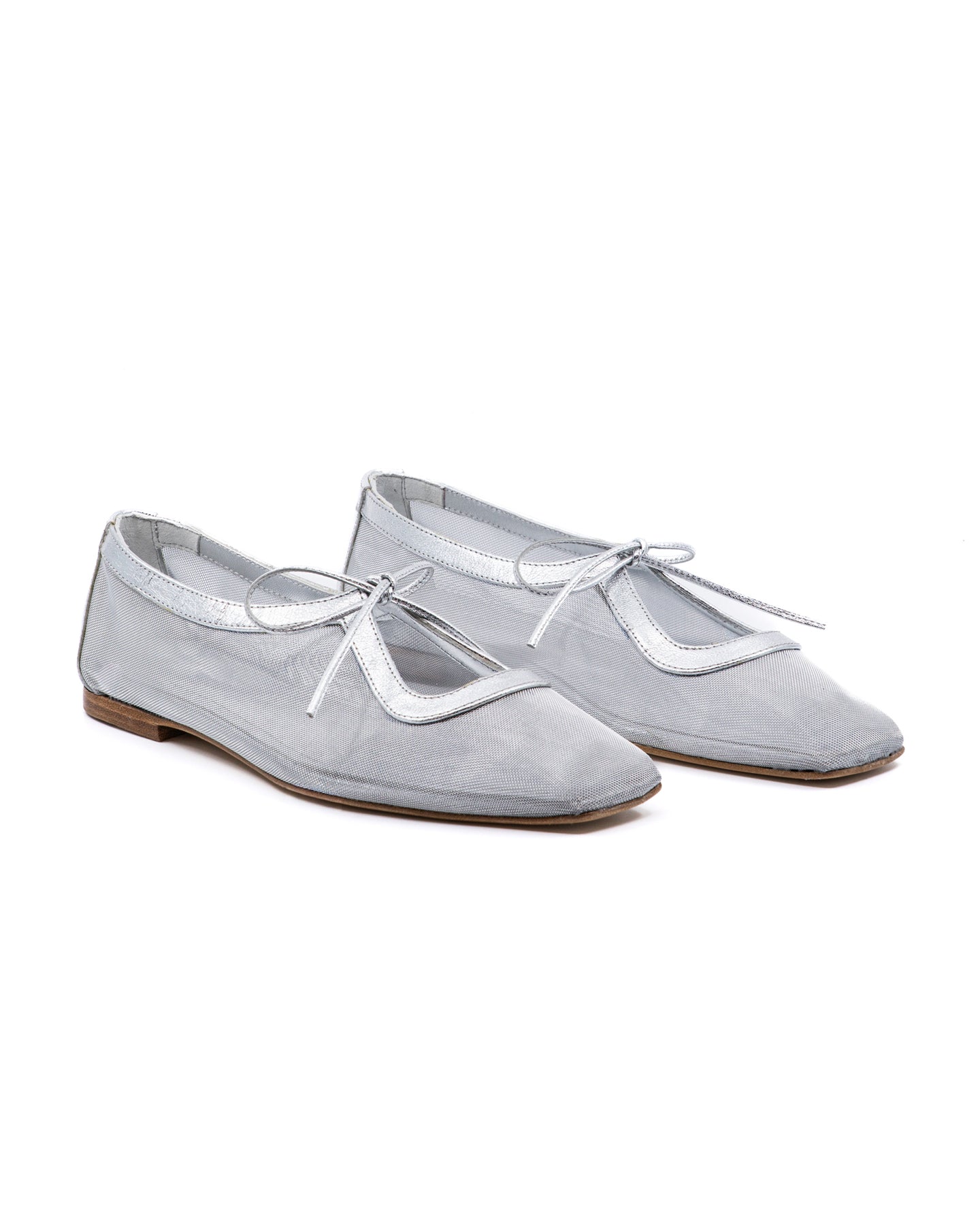 A modern take on the classic ballerina, made from clear mesh with a foot-hugging design and a bow-tied vamp strap.