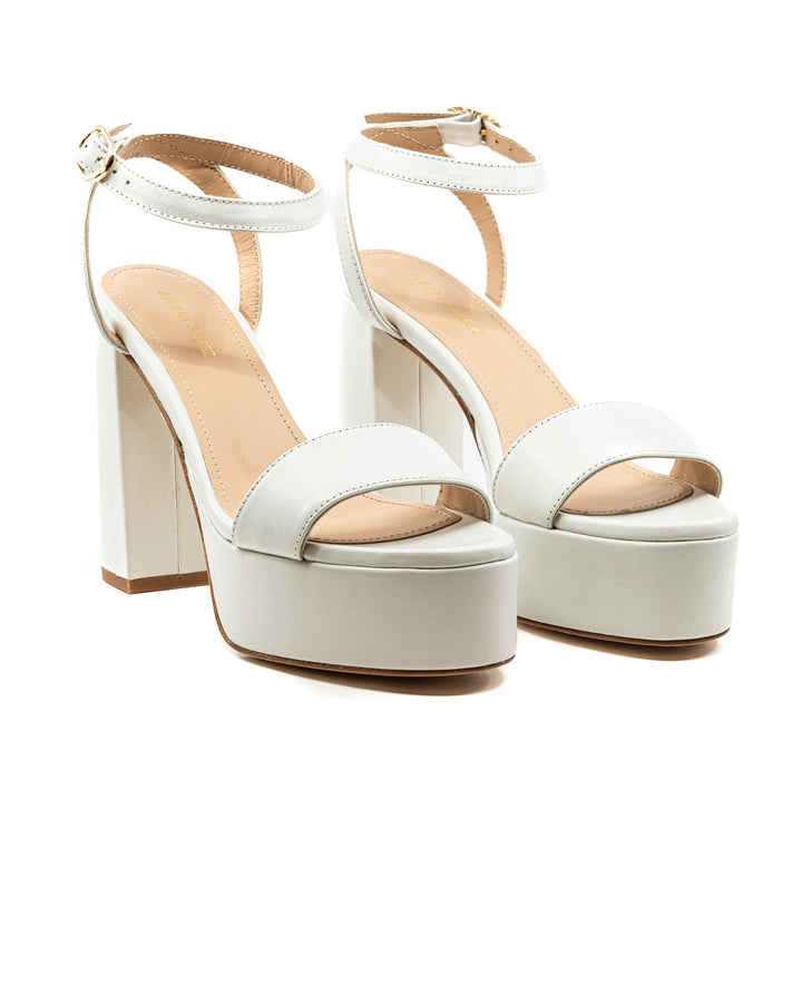 A platform sandal with a walkable block heel and a buckle ankle strap for ease and style.