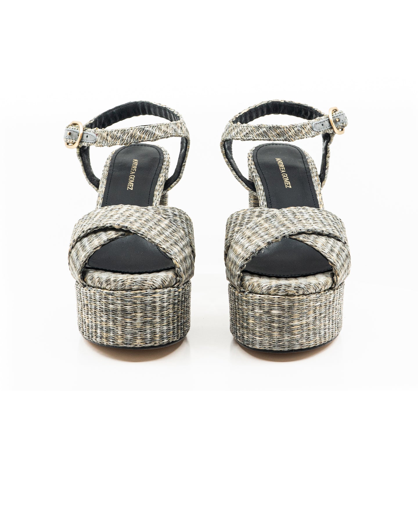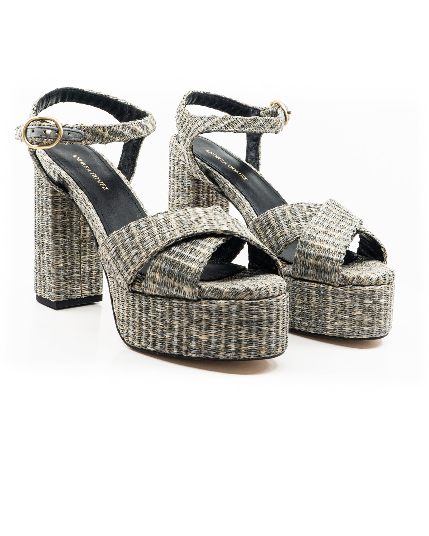 Handmade from woven raffia, this platform sandal features a walkable block heel and a buckled ankle strap for a chic look.