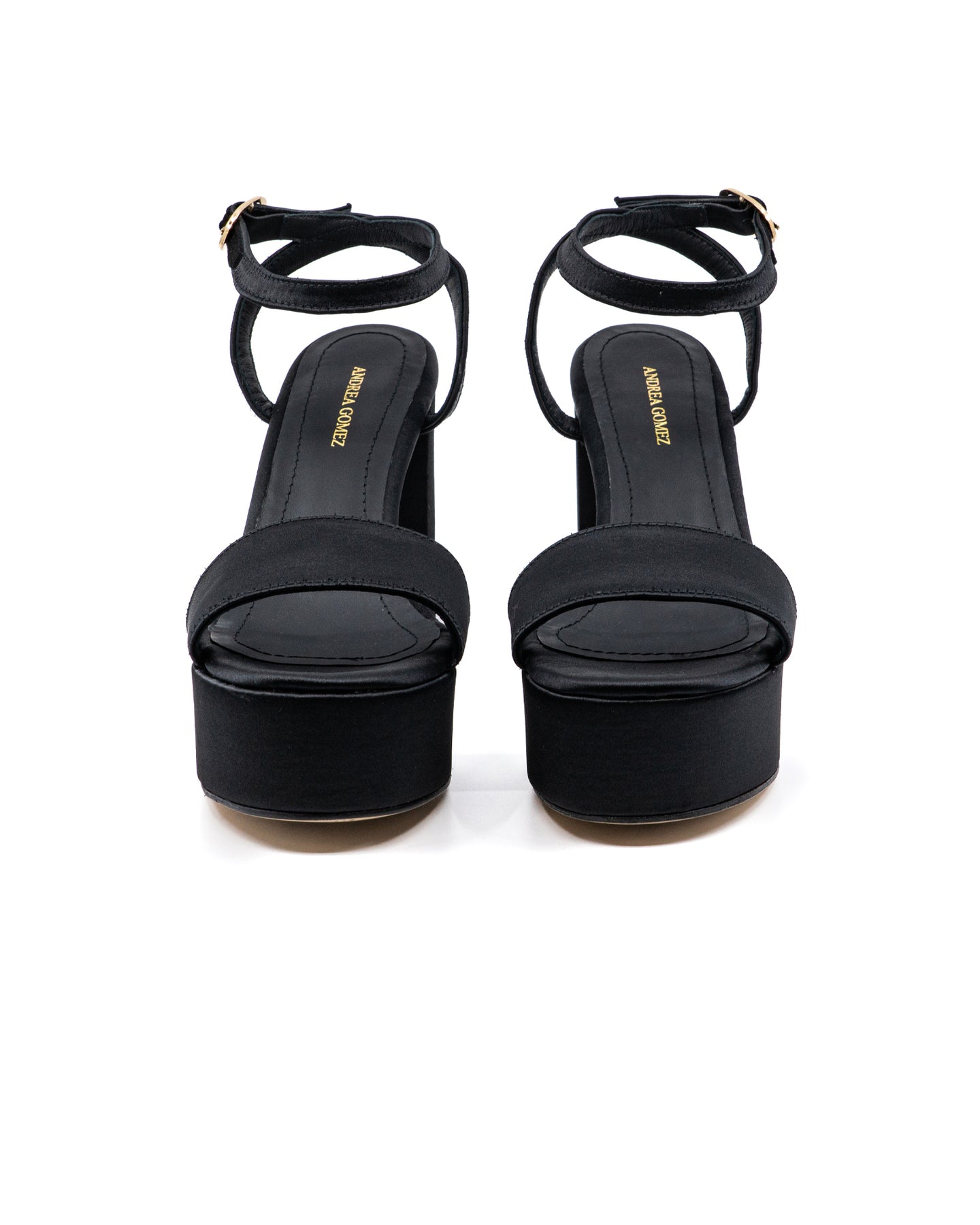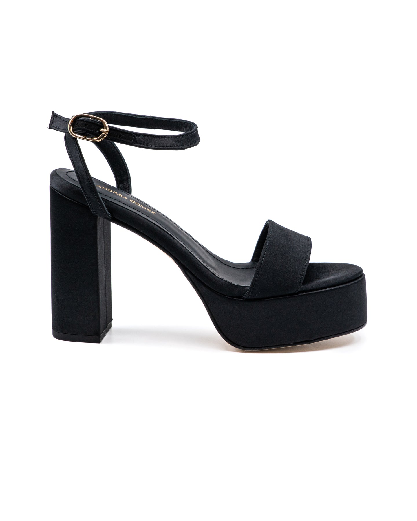 A platform sandal with a walkable block heel and a buckle ankle strap for ease and style.
