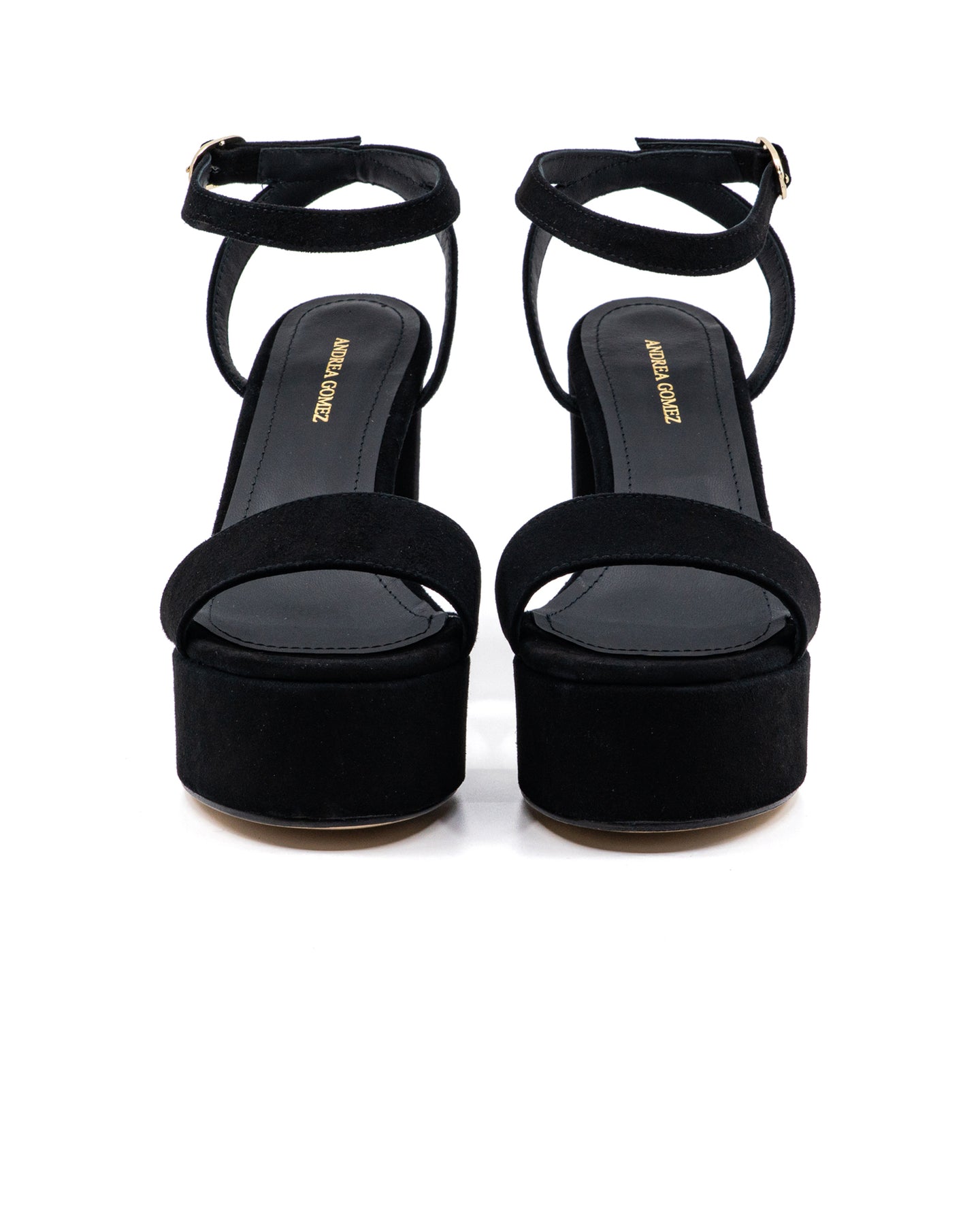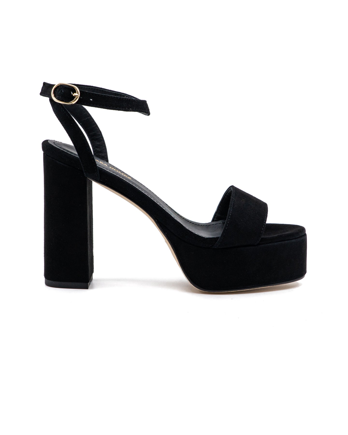 A platform sandal with a walkable block heel and a buckle ankle strap for ease and style.