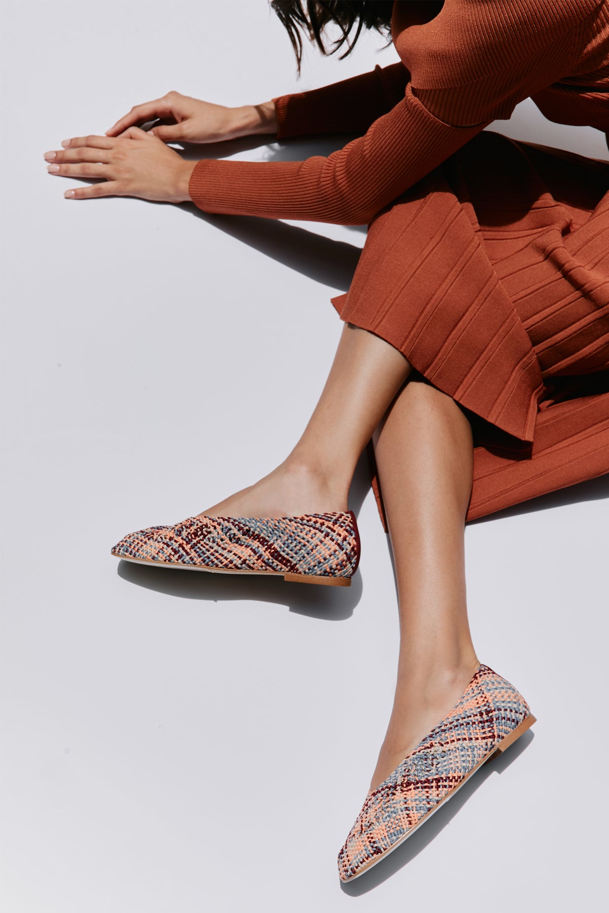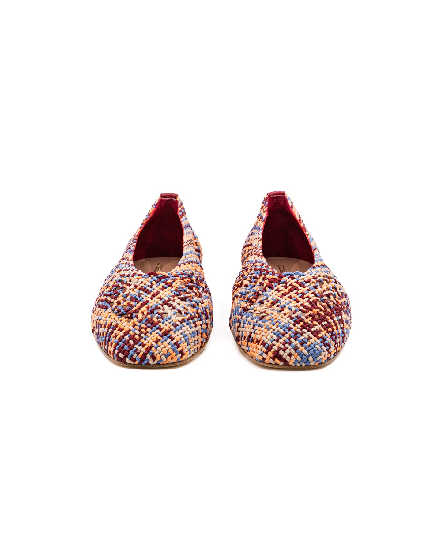 A classic ballerina flat made with multi-fabric woven in an elegant pattern.